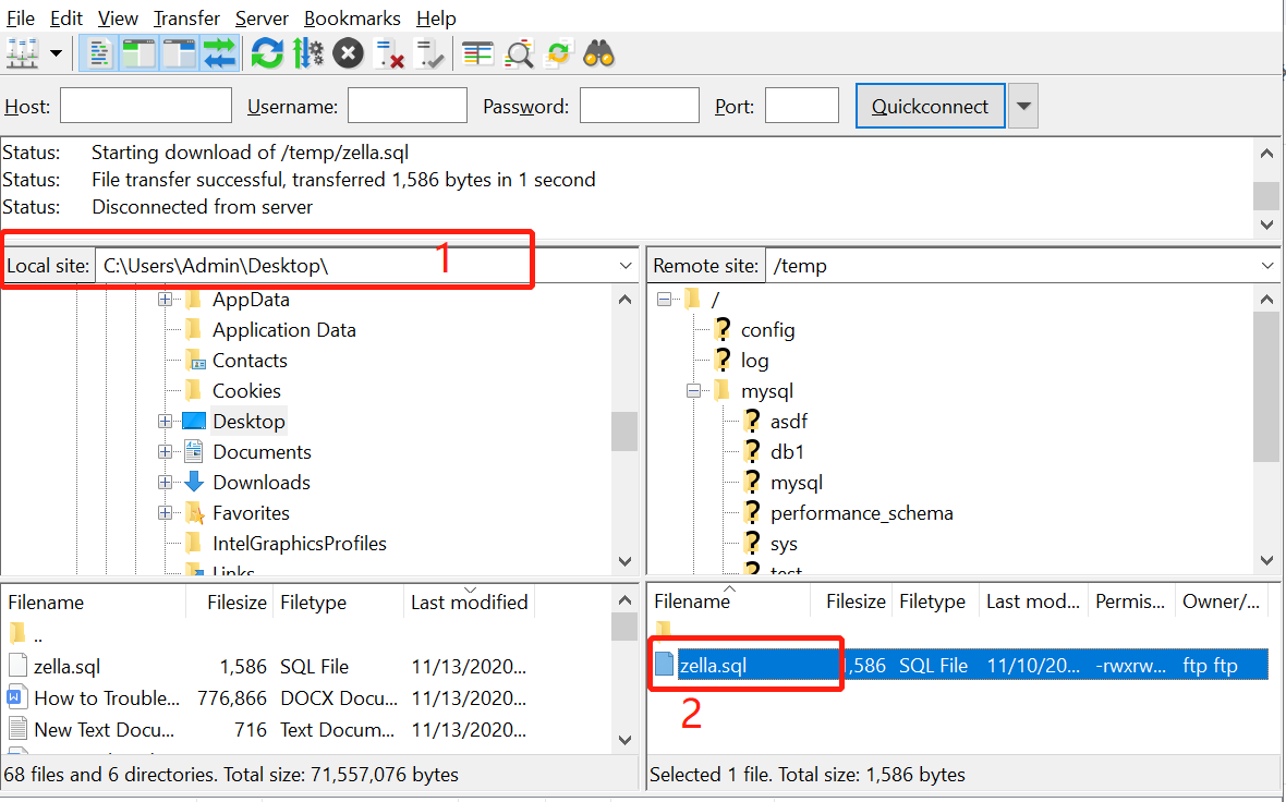 3. Connect to FTP server from your FTP client -- FileZilla