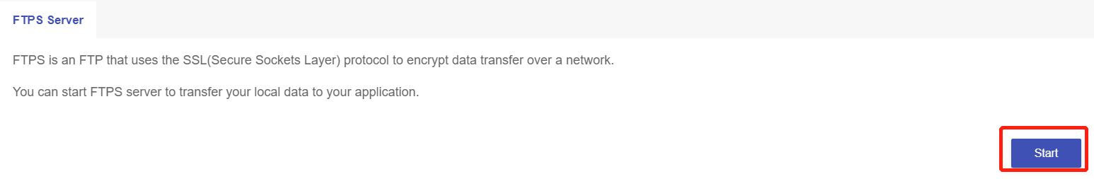 Then click the "Start" button to enable the FTPS feature.