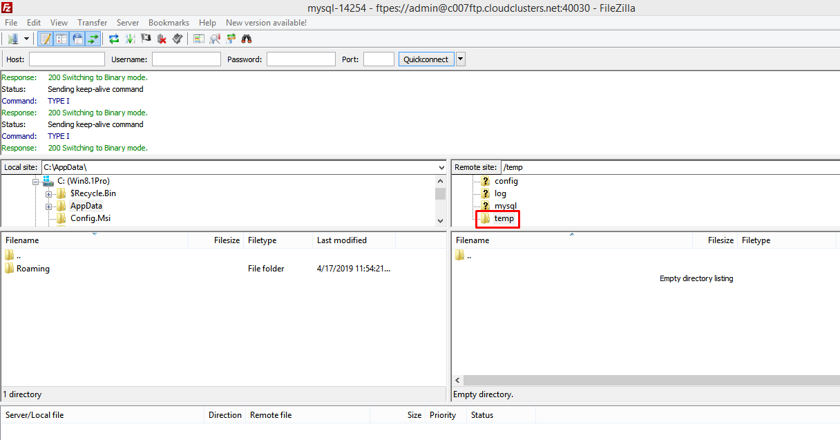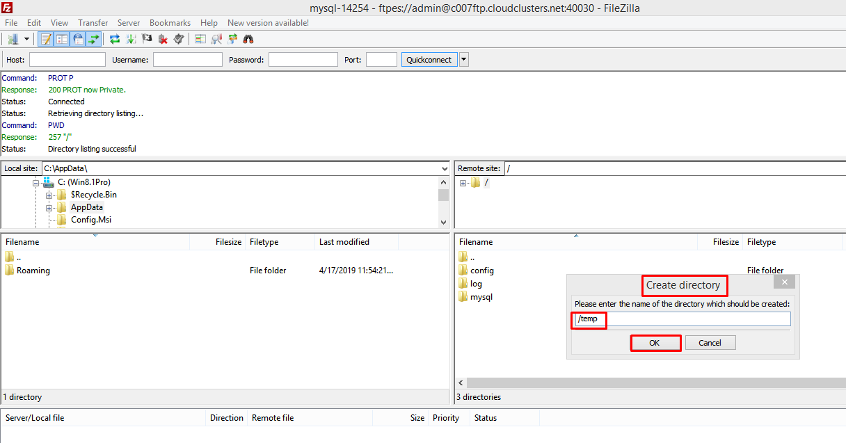 Create a temp folder in FTP server to store data.