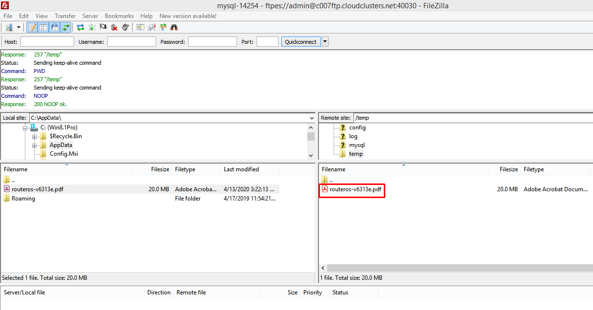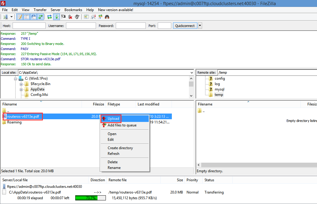 4. Transfer data into FTP server