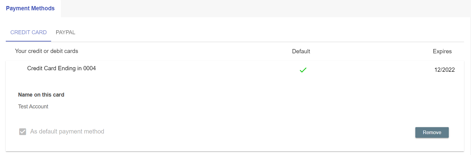 Log in to the Control Panel and go to the Billing > Payment Methods > CREDIT CARD page.
